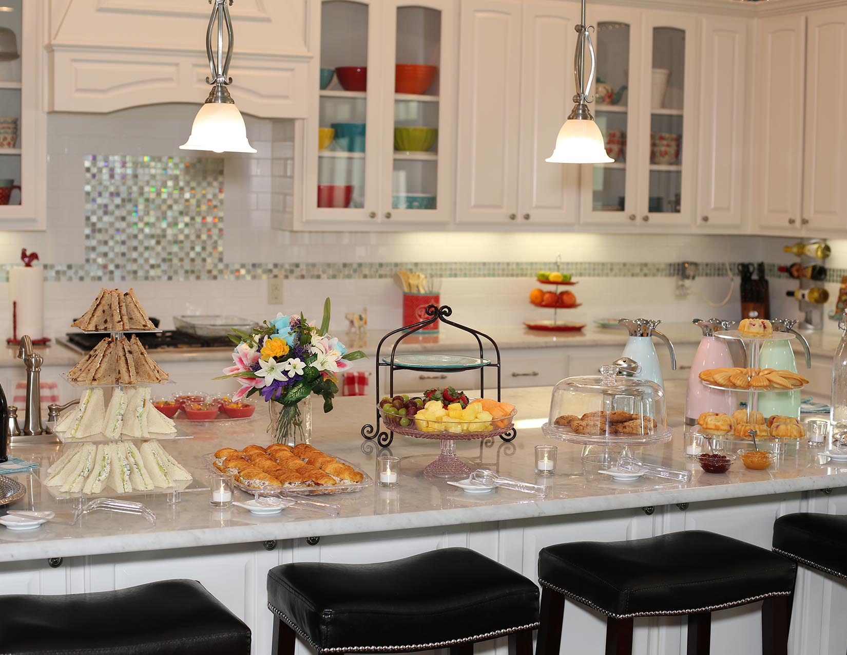 The traveling tearoom that comes to you! You choose the location and guests. I provide everything else – the tea, food, linens, teacups, tableware, silverware, even the soothing music if you like. I will set your table, cater and serve the delicious food, brew and serve the tea, and stay afterwards to do the dishes so you can focus on your guests. I can also host your indoor or outdoor event at my home for a complete pampered experience for you and your guests! Our afternoon tea menu includes delicious finger sandwiches, sweet and savory bites, homemade scones, fresh fruit, fresh-baked pastries, and scrumptious cakes. Food and tea are served using vintage dishes, china, cake stands, towers, and pretty teapots. The Traveling Teapot is available for any occasion – parties, showers, birthdays for little girls, birthdays for girls who are young at heart, get-togethers, hen parties, bridge clubs, gentlemen lunches, business meetings, just because it is a Tuesday, and more!