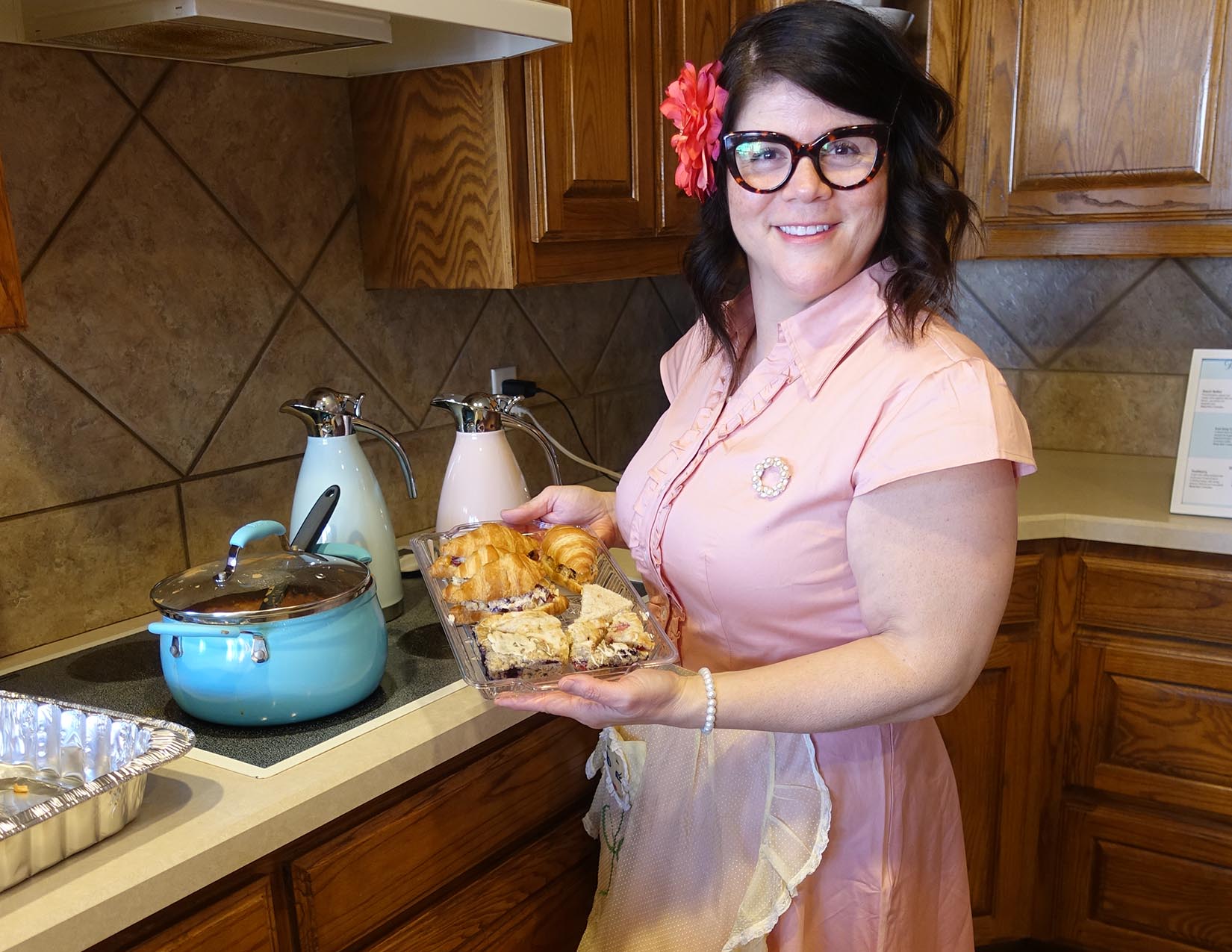 I whisk and mix those ingredients to create a unique experience of a tea party that travels to you! Gently fold in your guests. Bake at 350° until well-loved. I serve with a warm smile. Enjoy!